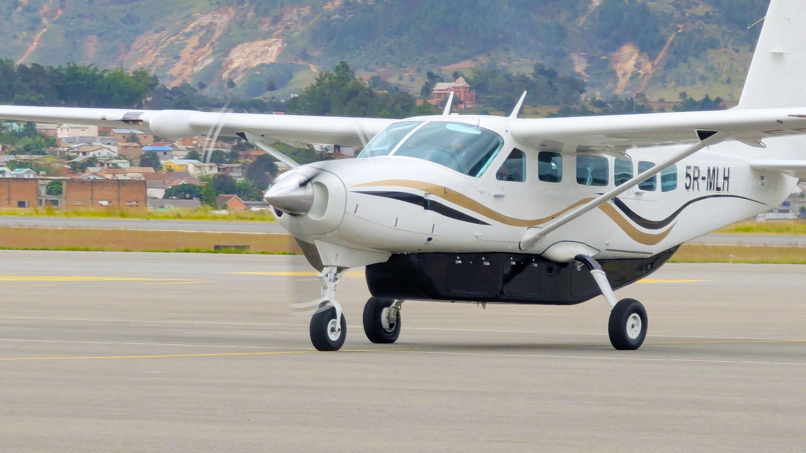 Le Caravan est l’excellence des avions de brousse. C’est un appareil turbopropulseur, économique, bénéficiant d’une grande capacité d’emport de 750 à 900kg en fonction de la distance à parcourir. Cet appareil est capable de se poser et décoller sur de très petites pistes de brousse, il lui suffit de 550 mètres.