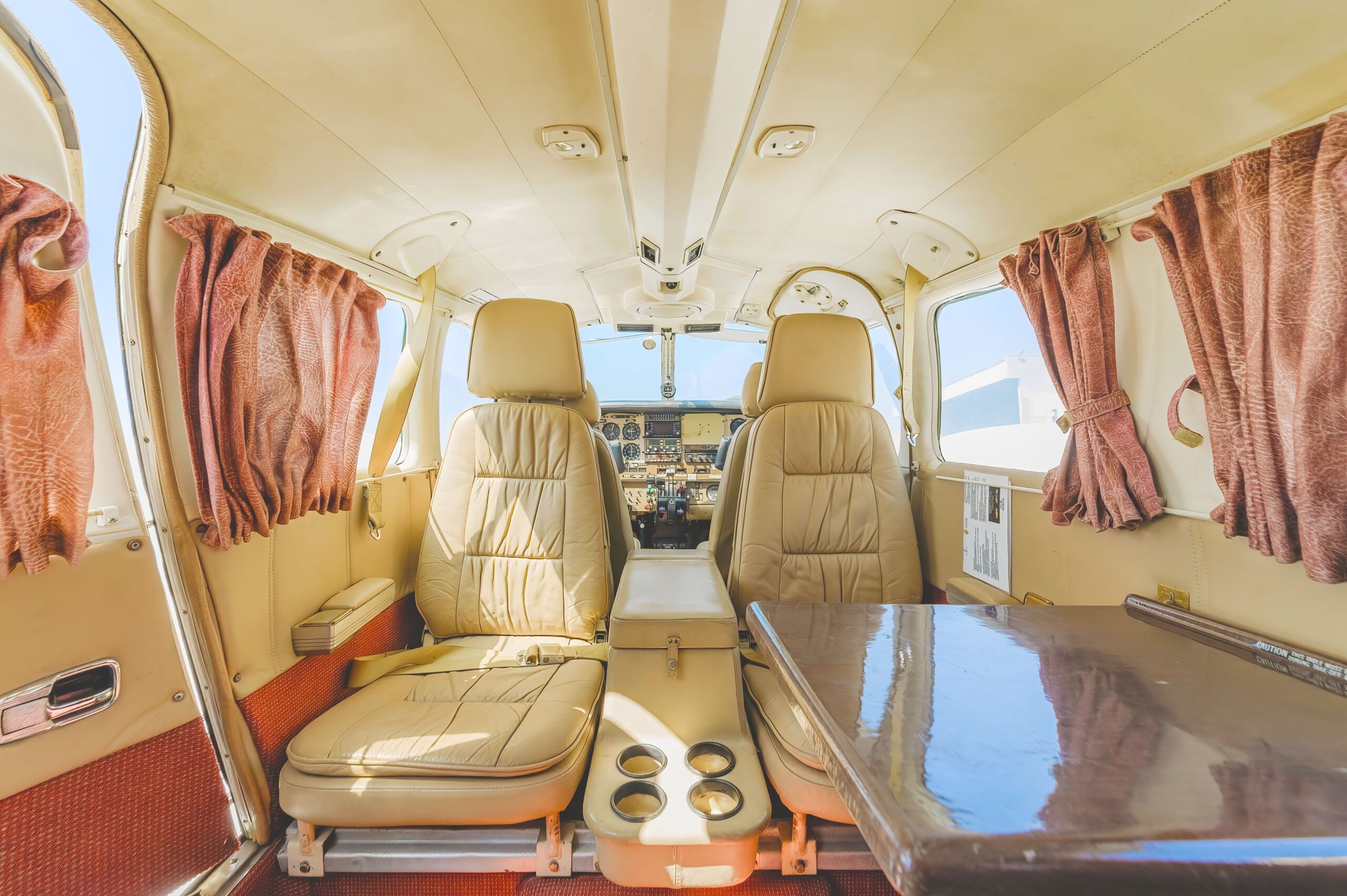 Petit bimoteur économique. Ses 4 places sont en version club, la cinquième place est disponible à côté du pilote.