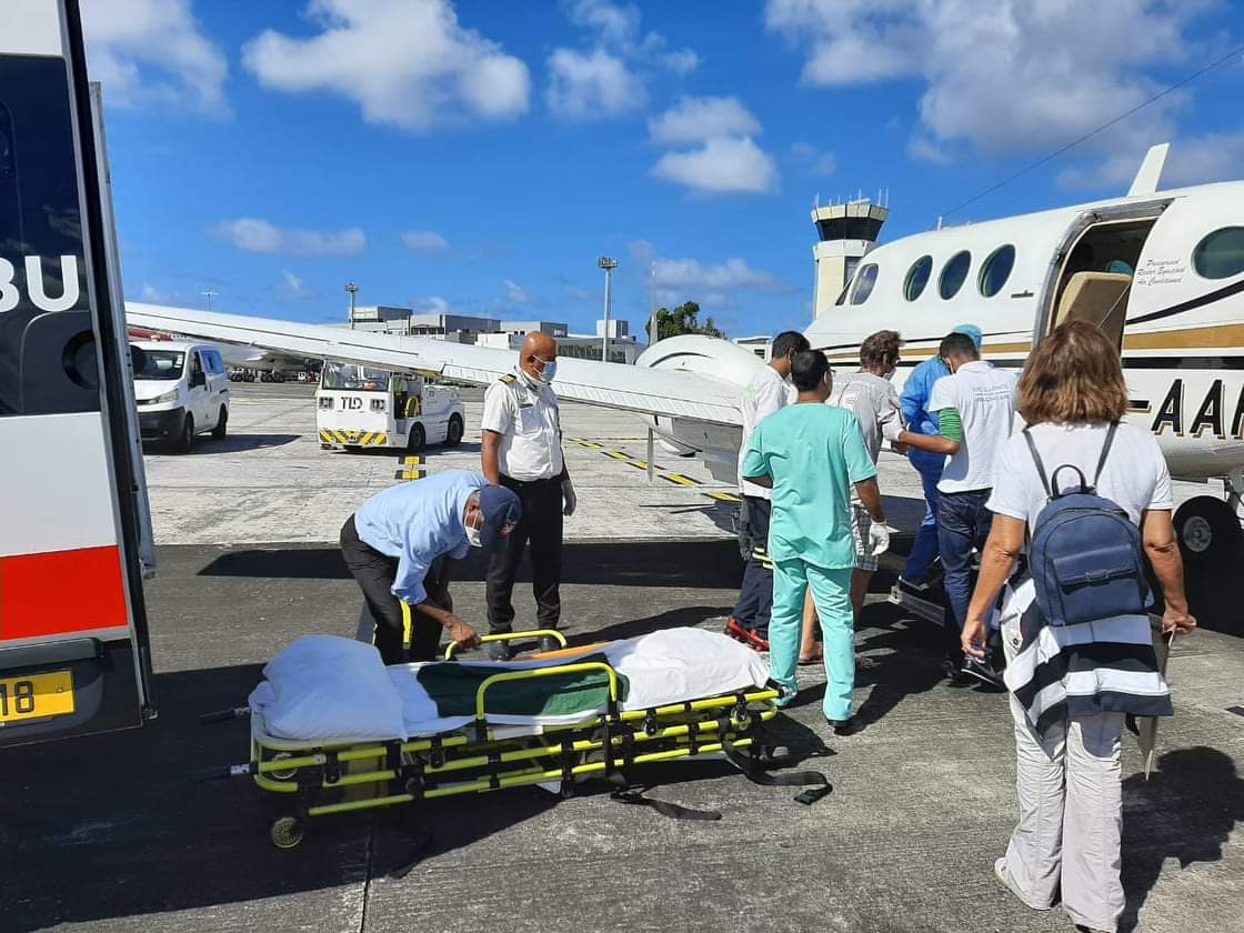 Un transport médicalisé urgent destiné à transférer une personne blessée ou malade vers un établissement de santé, en utilisant un avion équipé pour fournir des soins pendant le trajet...
